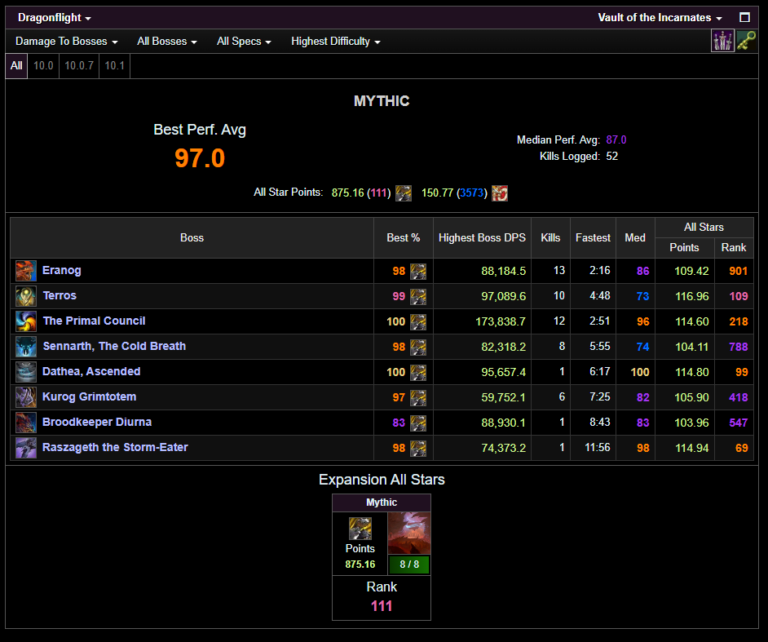 As for my own performance, well it was pretty decent. I ended up as the 180th best BM Hunter in the world on overall damage, and on Boss Damage I was 111th in the world overall!