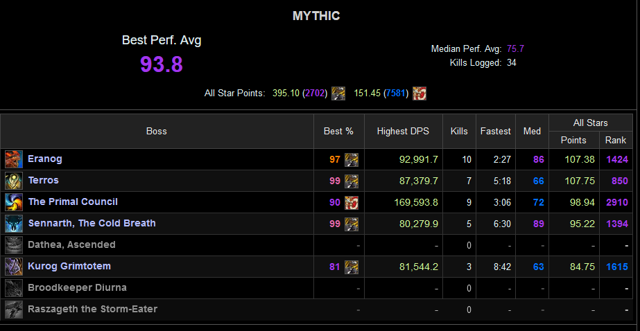 I managed to get a World Record DPS score on Sennarth as BM (without external buffs) at my iLevel, which was gratifying as hell, and parse-wise I'm currently sitting just below 94% overall: